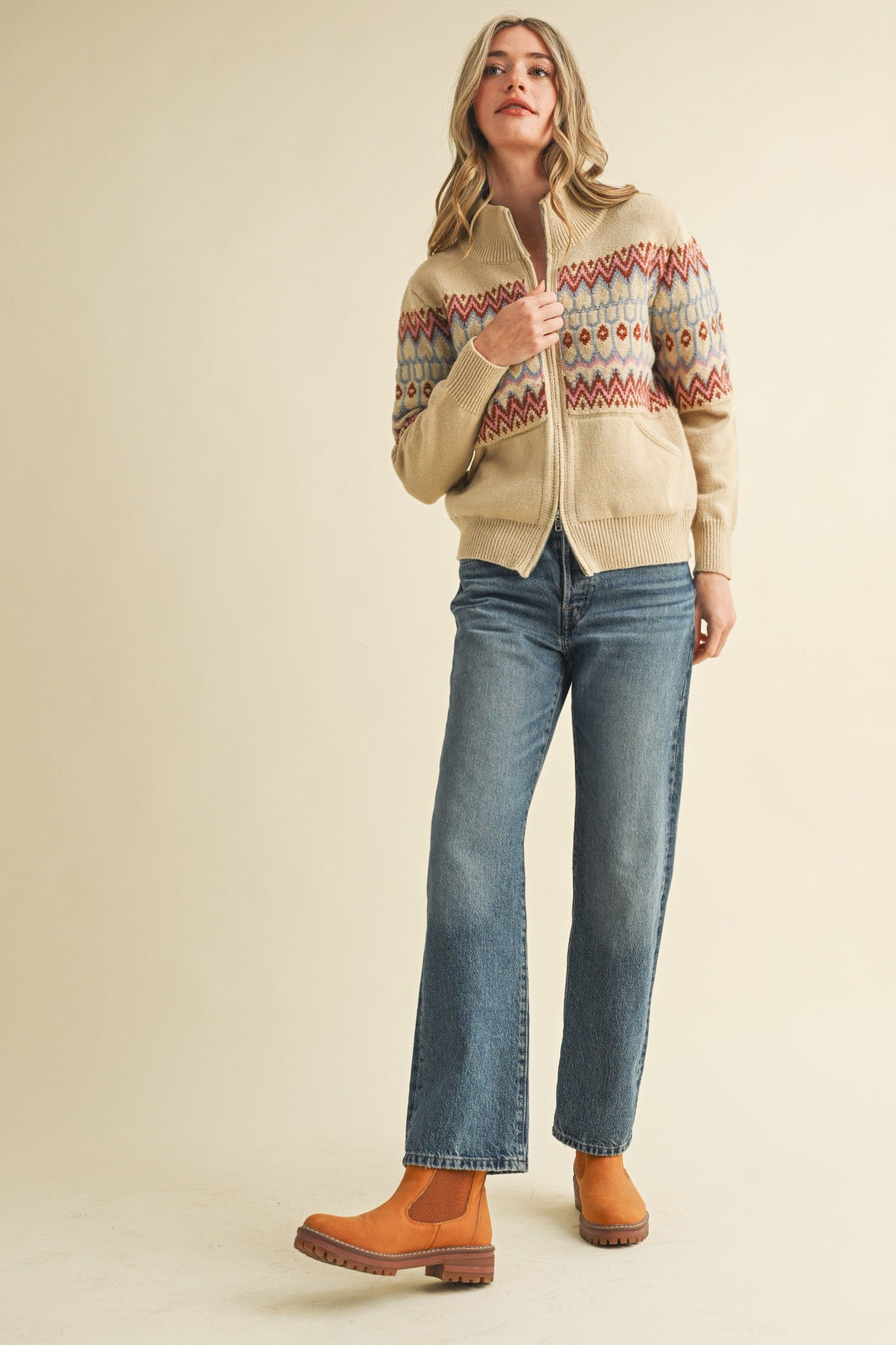 All Good People will love this zip up sweater. The perfect cold weather staple. Easy to layer or be its own piece. With a top and bottom zip this can be worn as a cardigan, sweater, or top. The perfect soft fabric blend.