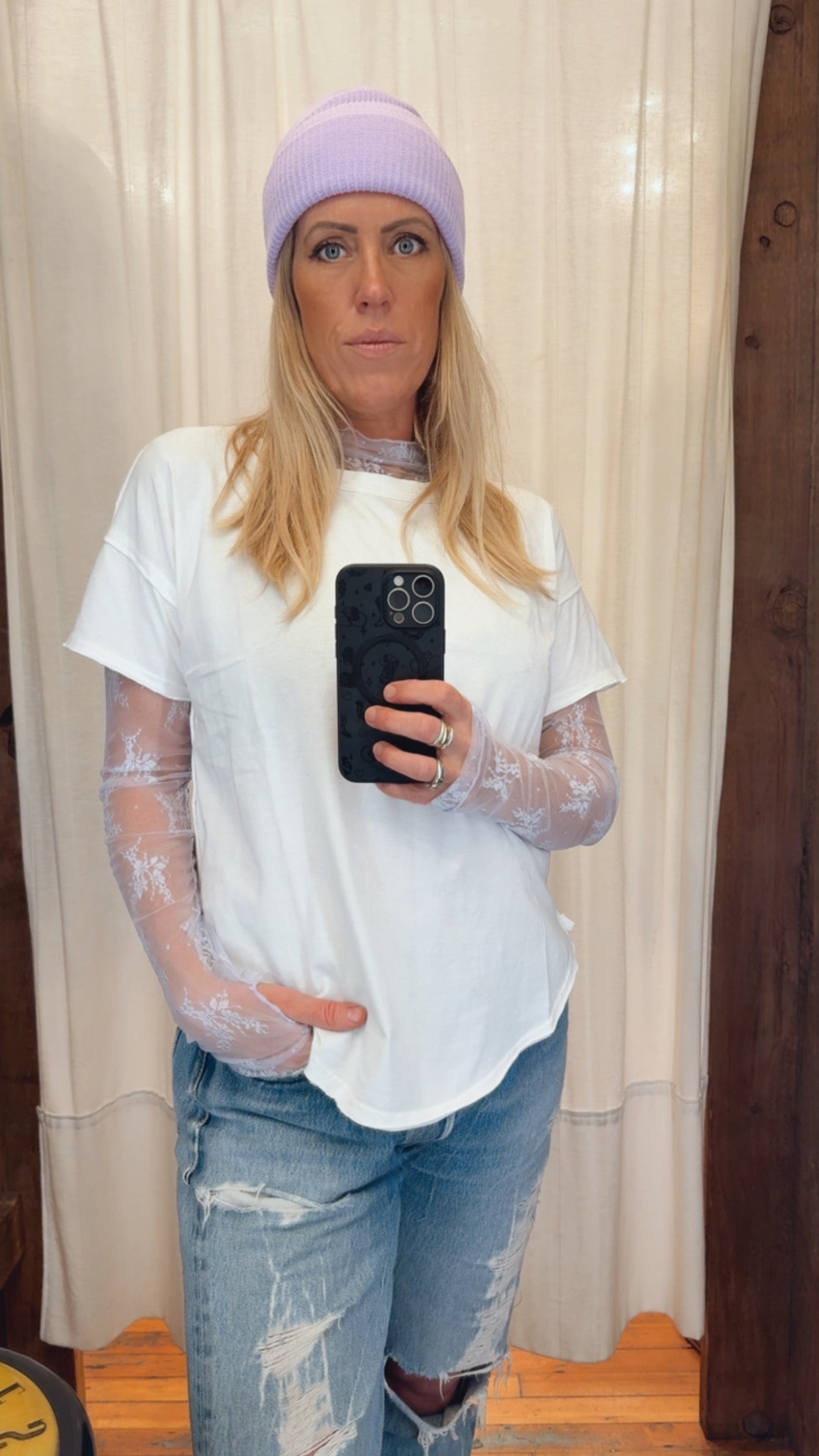 The Walk The Line t-shirt is the one, with an inside out stitched back tag; and a rounded hem this is elevated and classic. We all need one, grab this classic tee. 100% cotton.