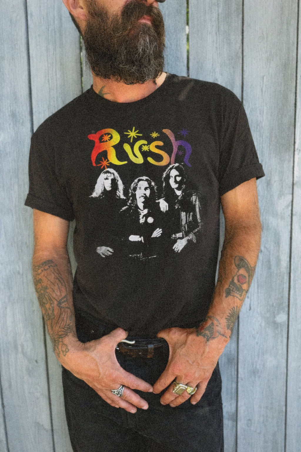 Our officially licensed Rush Band T-shirt showcases the legendary trio together in a classic full band graphic. Rush fused hard rock with progressive vision and intellectual depth, creating a bold sound that was completely their own.