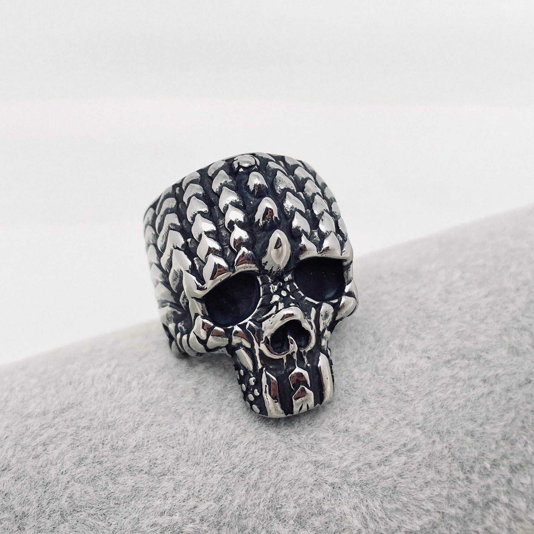 A classic biker ring for your collection. Our Nightrider Skull ring was created out of  stainless steel. This piece will ride hard. Wear everyday or pull out for special occasions.