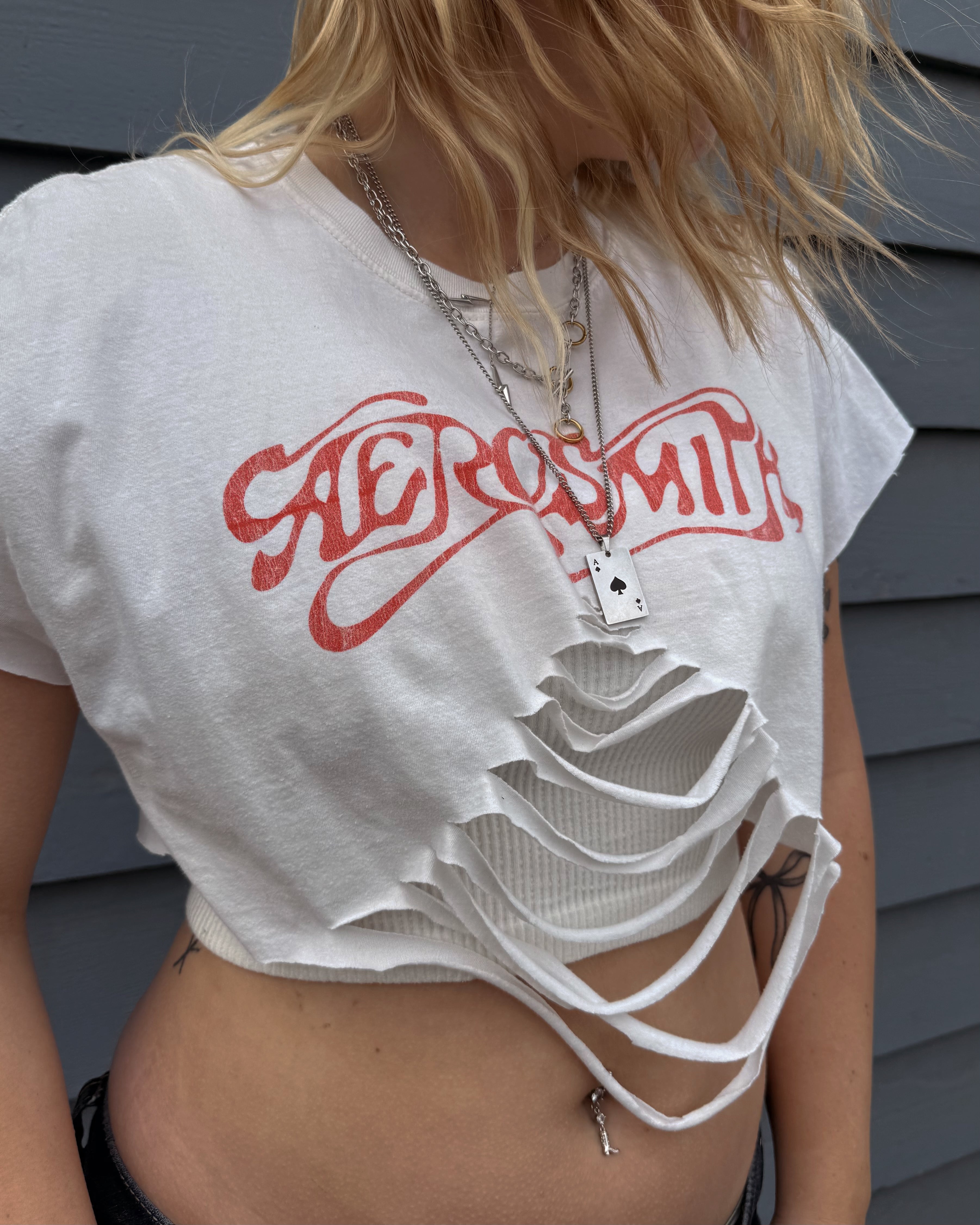 All Items are done in house. Our Chop Shop features one of a kind distressed, bleached, and dyed products done by one of our very own team members!