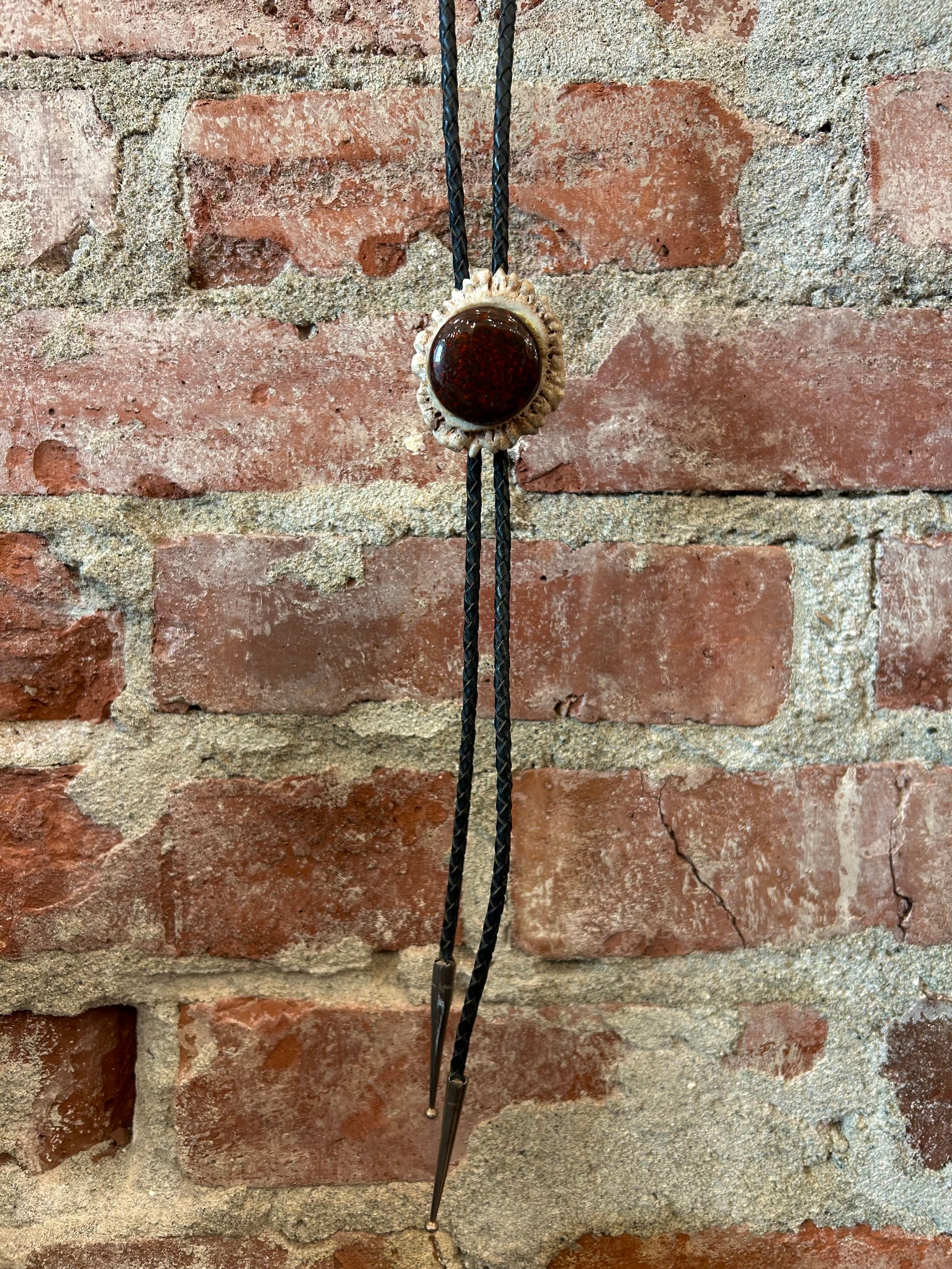 Antler Bezeled Red Stone Bolo Tie