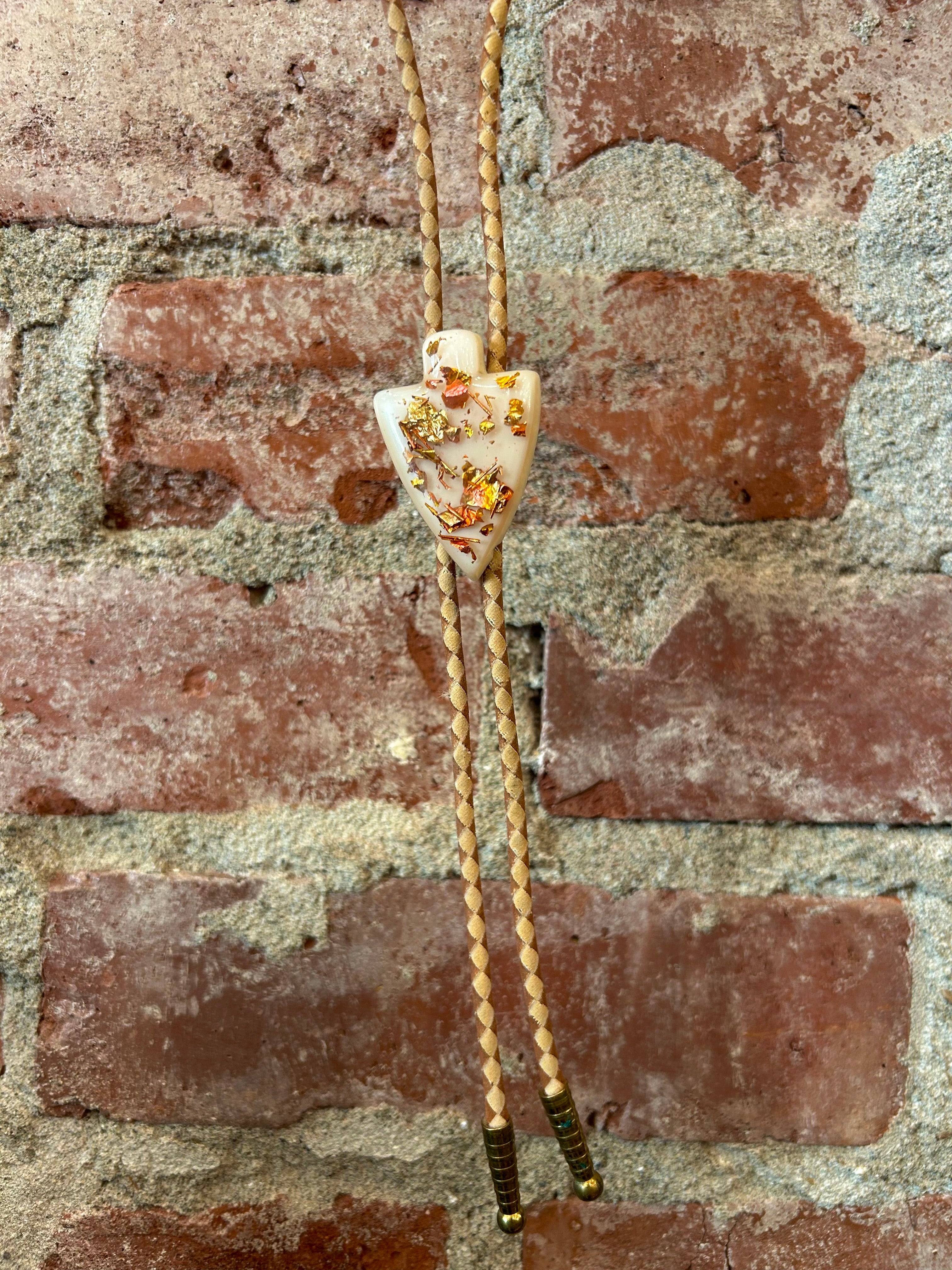 Gold Leaf Resin Arrowhead Bolo Tie