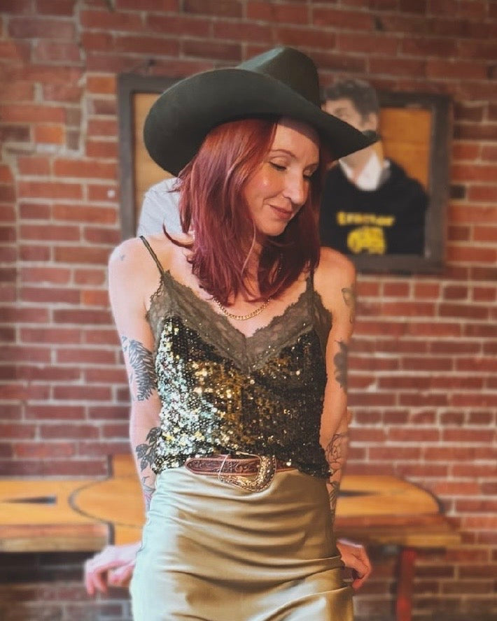 Start Me Up sequin tank top is a nod to classic rock 'n roll. This stunning green is as glamorous as it is cool. Perfect for New Years' Eve attire, birthday dinners, or a special date-night top. Pair with a faux fur and a satin skirt.